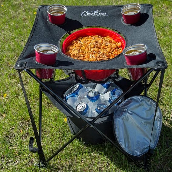 This Clever Tailgate Table Has an Insulated Cooler and Spots for Drinks and Snacks