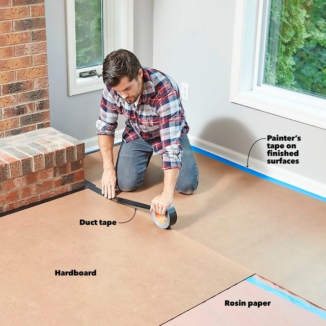 - Pro tip: The rosin paper keeps granules that might get under the hardboard from scratching the wood floor, and the hardboard protects against dents.